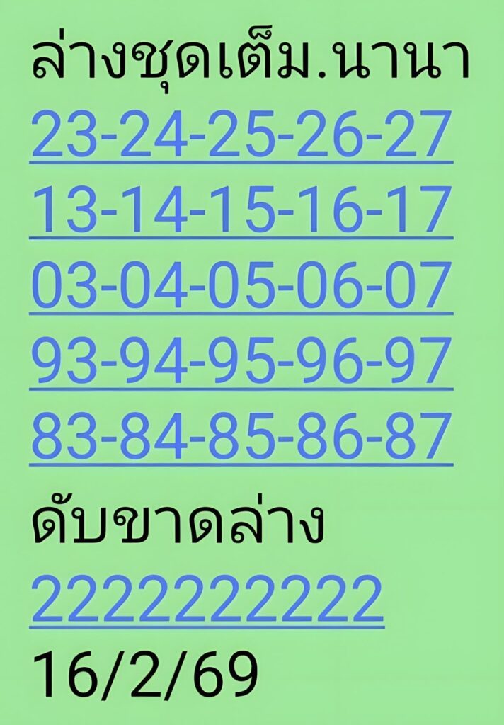 เลขเด็ด “นานา แผ่นเขียว” ลุ้นงวด 16 ก.พ.69