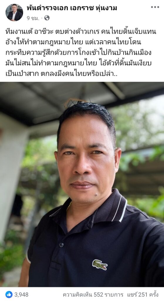 พ.ต.อ.เอกราช เผย เวลาคนไทยโดนกระทืบ ชี้ ไอ้ตัวที่ดิ้นมันเงียบเป็นเป่าสาก