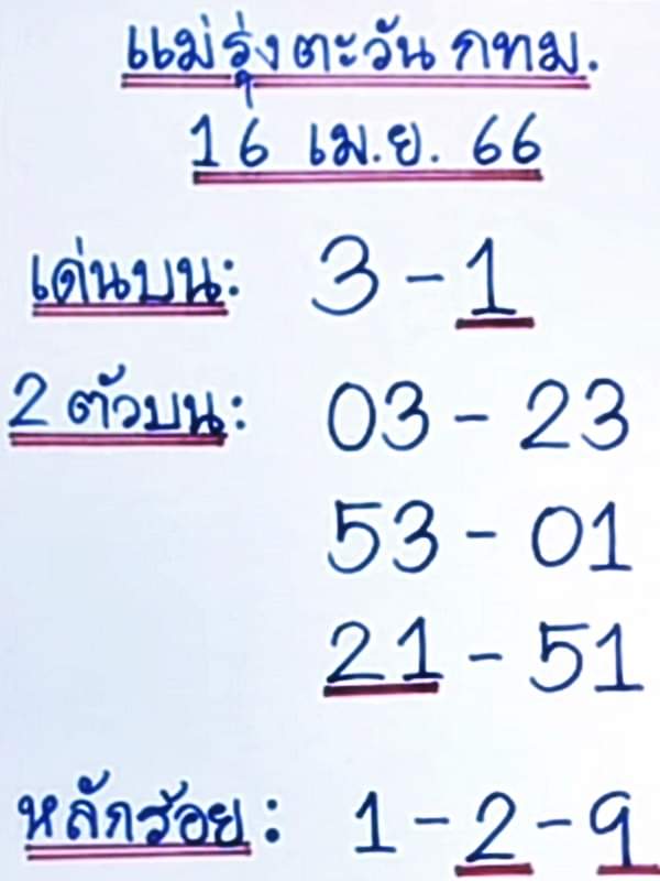 เลขเด็ด “แม่รุ่งตะวันกทม.” ลุ้นงวด 16 เม.ย.66