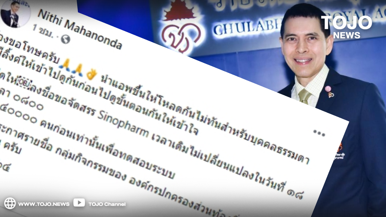 หมอนิธิ เผย เตรียมเปิดให้ประชาชนลงทะเบียนจองซิโนฟาร์ม ผ่านแอปฯ 18 ก.ค.นี้ เวลา 08.00 น. รับ 4 หมื่นคนก่อน เพื่อทดสอบระบบ