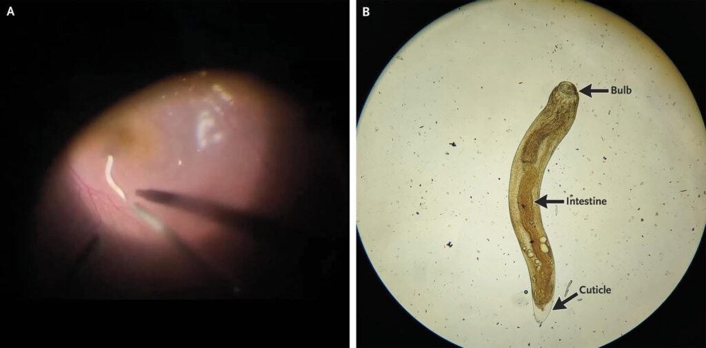 ผู้ป่วยได้รับการวินิจฉัยว่าเป็น พยาธิตัวจี๊ดในตา (ocular gnathostomiasis)