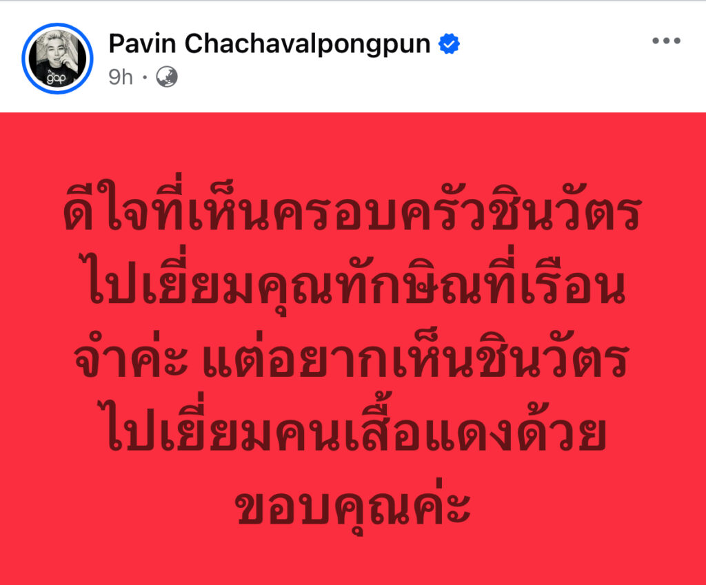 ปวิน เหน็บ ดีใจที่เห็นครอบครัวชินวัตรไปเยี่ยมทักษิณ แต่อยากเห็นไปเยี่ยมคนเสื้อแดงด้วย