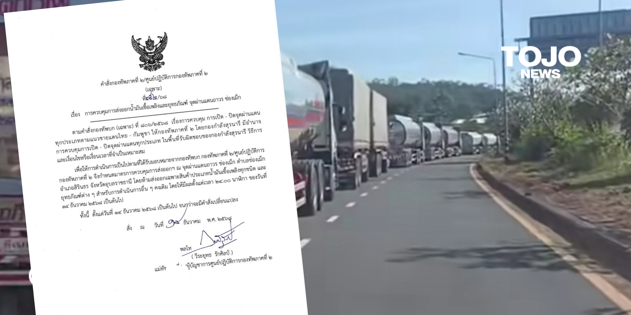กองทัพภาคที่ 2 คุมเข้มด่านช่องเม็ก งดส่งออกน้ำมันและยุทโธปกรณ์ มีผลเที่ยงคืน 14 ธ.ค.68