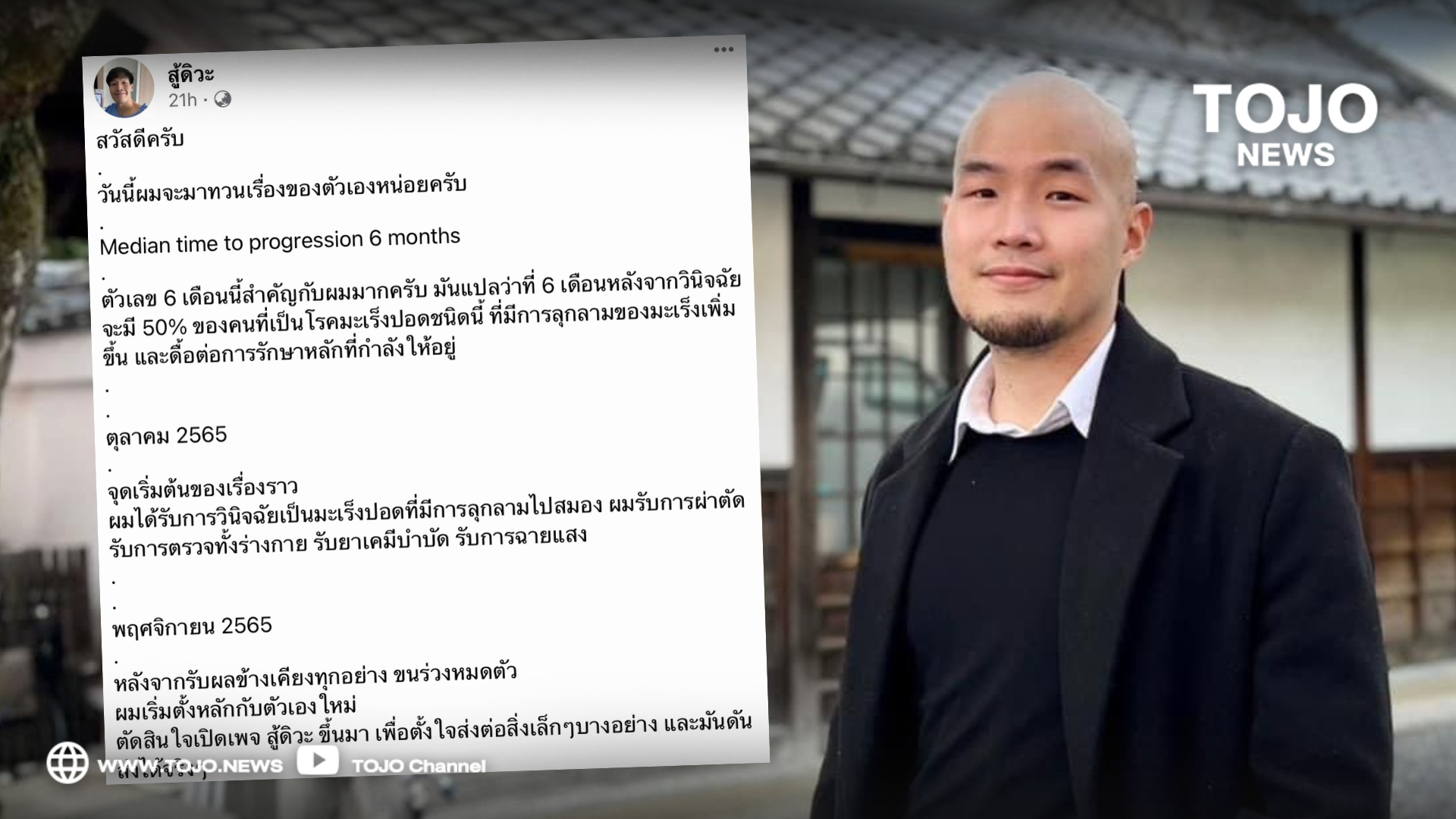 ผู้สื่อข่าวโตโจ้นิวส์รายงานว่า หมอกฤตไท ธนสมบัติกุล ที่เปิดเพจ สู้ดิวะ เล่าประสบการณ์ป่วยเป็นมะเร็งปอด ได้โพสต์ภาพขณะเดินทางไปเที่ยวญี่ปุ่น พร้อมอัพเดทอาการ โดยระบุว่า