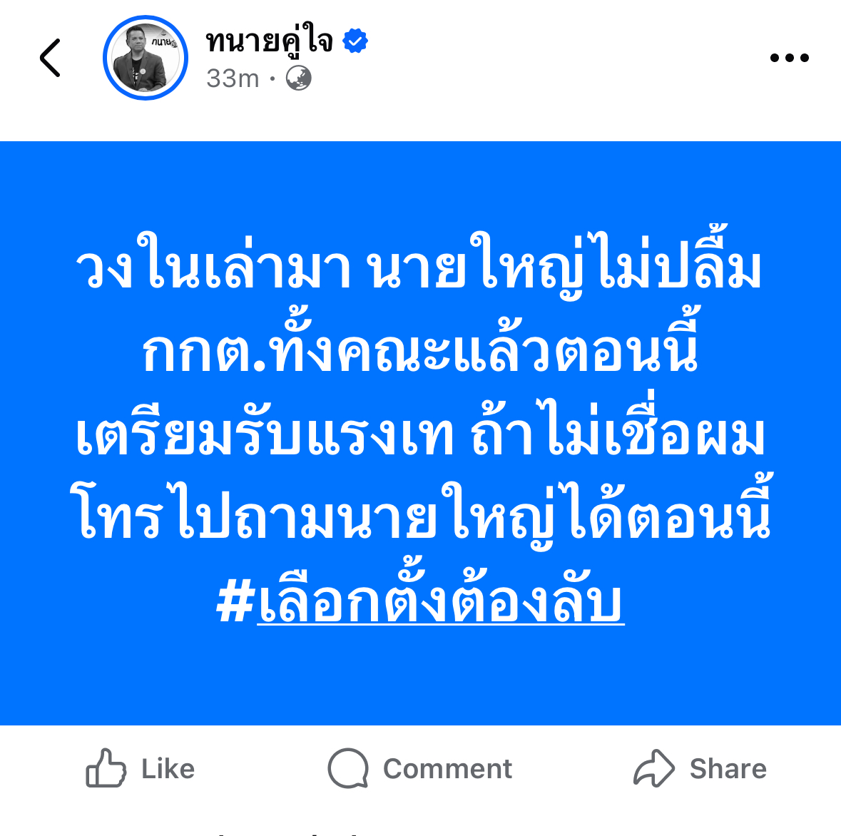 วงในเล่ามา นายใหญ่ไม่ปลื้มกกต.ทั้งคณะแล้วตอนนี้ เตรียมรับแรงเท ถ้าไม่เชื่อผมโทรไปถามนายใหญ่ได้ตอนนี้