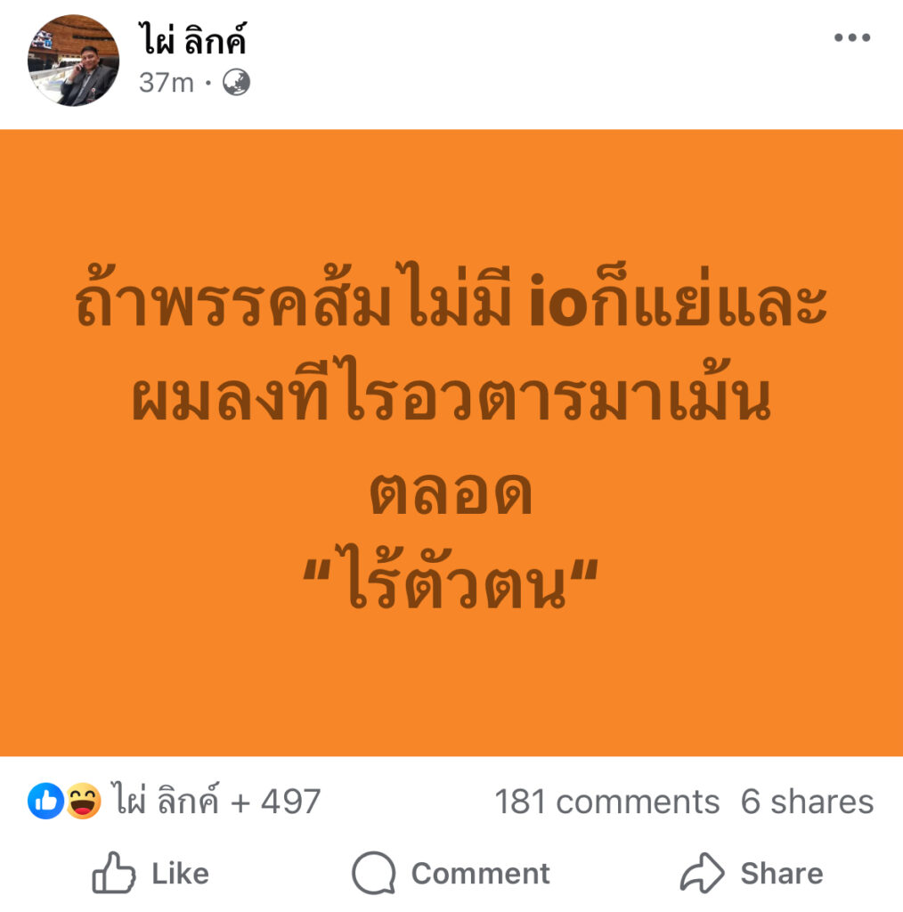 ถ้าพรรคส้มไม่มี ioก็แย่และผมลงทีไรอวตารมาเม้นตลอด