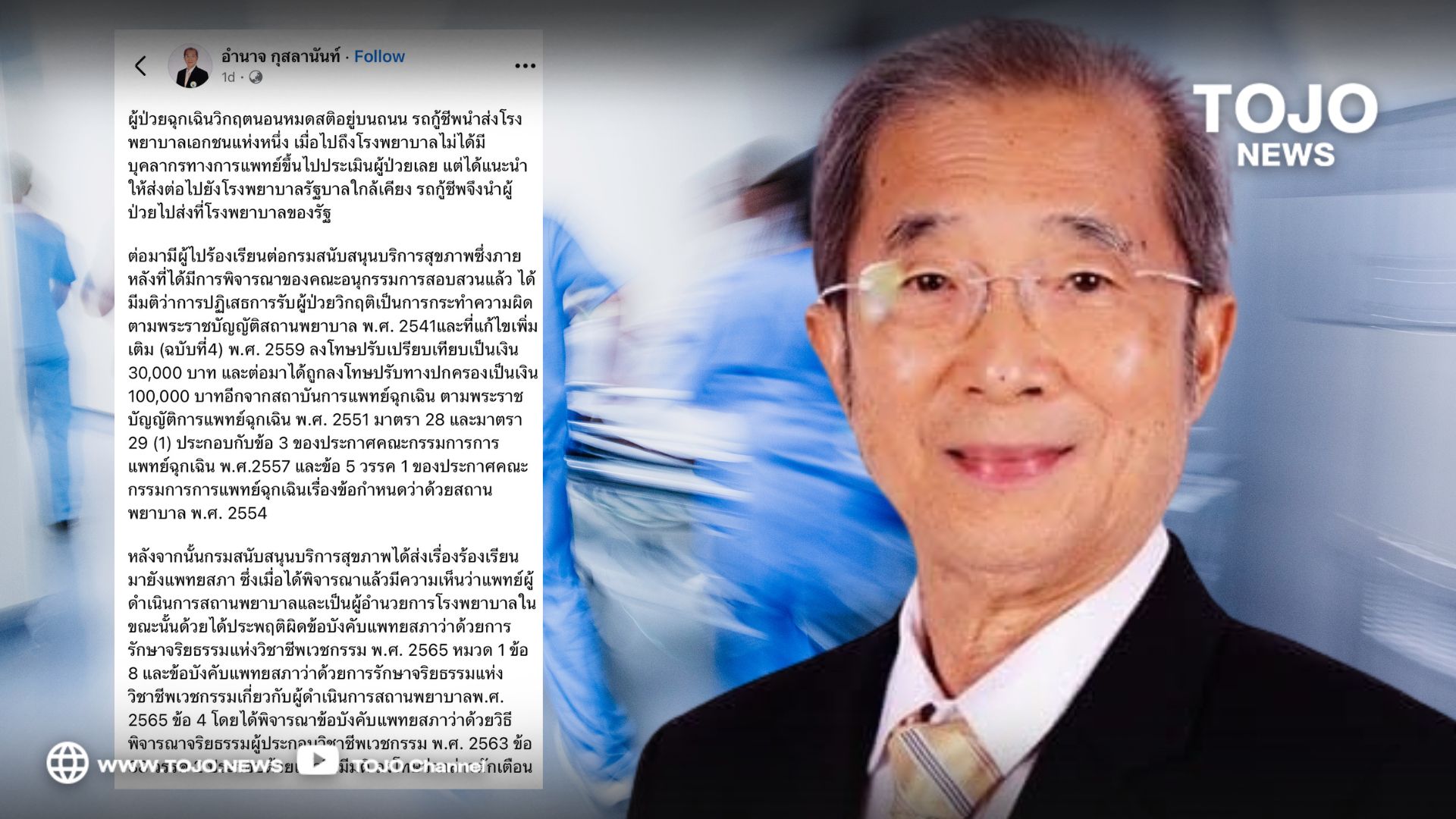 หมออำนาจ อดีตนายกแพทยสภาฯ ยกเคสเตือน รพ.เอกชนที่ปฏิเสธเคสผู้ป่วย มีศักยภาพที่จะรักษาแต่กลับส่งไปรพ.รัฐ ระวังผิดกฎหมาย