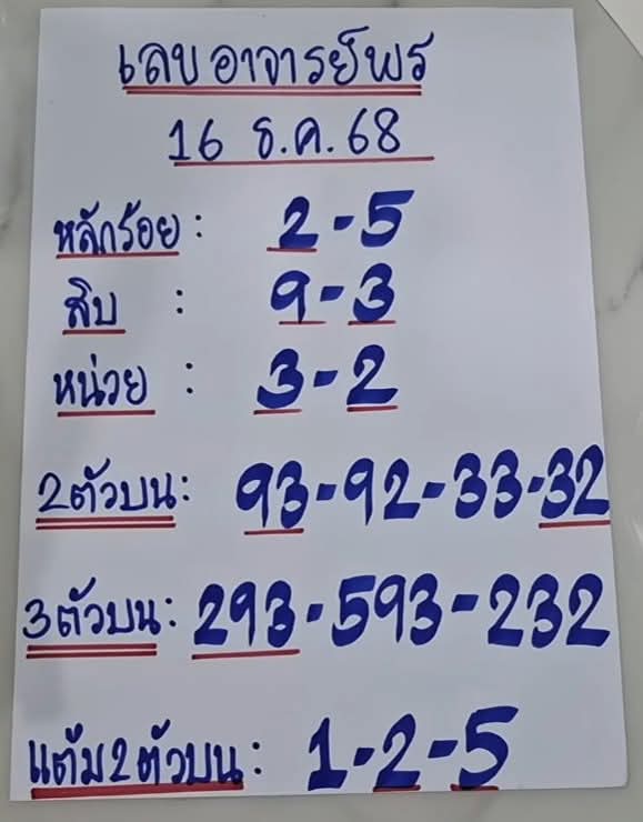 เลขเด็ด “อ.พร” ลุ้นงวด 16 ธ.ค.68