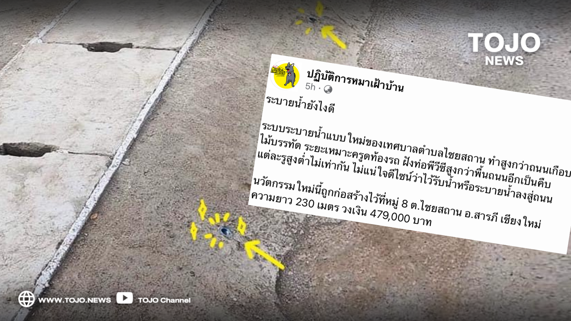 เพจดัง แฉ ระบบระบายน้ำเทศบาลตำบลไชยสถาน จ.เชียงใหม่ สูงกว่าถนนเกือบไม้บรรทัด แบบนี้จะใช้การได้ไหม?