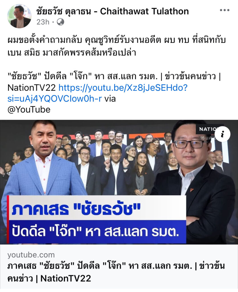ผมขอตั้งคำถามกลับ คุณชูวิทย์รับงานอดีต ผบ ทบ ที่สนิทกับเบน สมิธ มาสกัดพรรคส้มหรือเปล่า