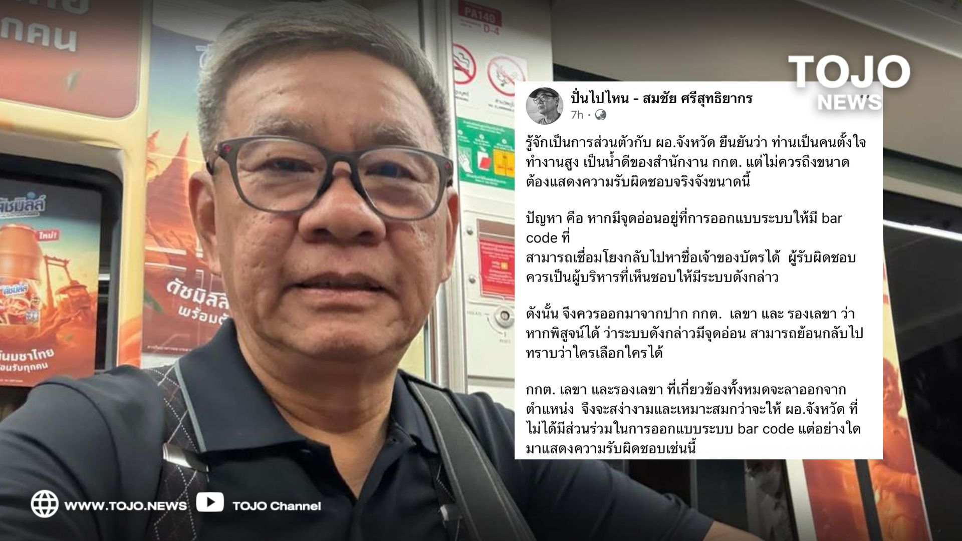 ผู้สื่อข่าวโตโจ้นิวส์รายงานว่า นายสมชัย ศรีสุทธิยากร อดีตกรรมการการเลือกตั้ง โพสต์ข้อความผ่านเฟซบุ๊ก ถึงนายคงยศ บุญรักษ์ ผู้อำนวยการสำนักงานคณะกรรมการเลือกตั้ง ประจำจังหวัดกำแพงเพชร โดยระบุว่า