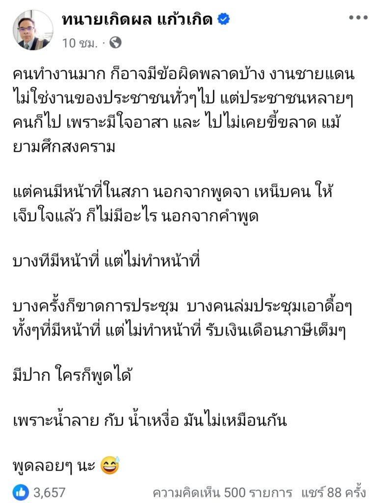 ทนายเกิดผล เทียบ คนอาสาทำงานชายแดน กับคนทำงานในสภา