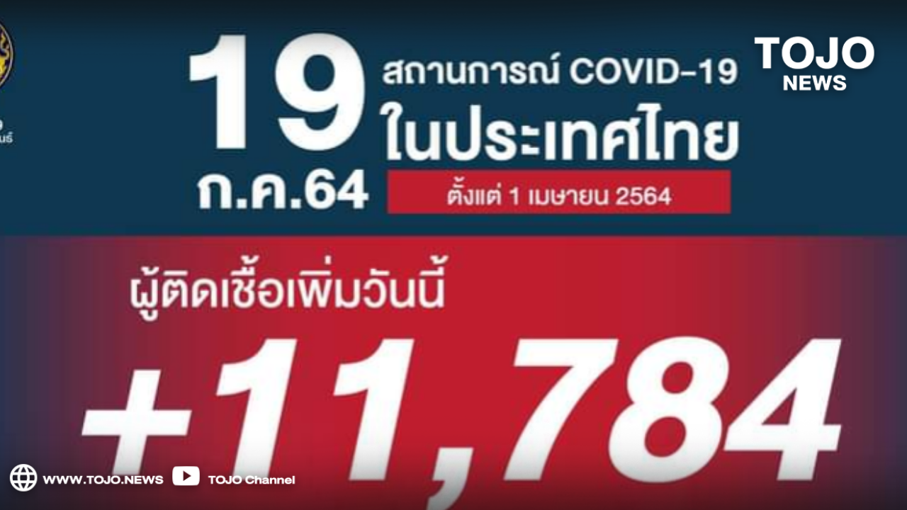 ผู้สื่อข่าวโตโจ้นิวส์รายงานว่า ศบค.รายงาน ยอดผู้ติดเชื้อโควิด-19 วันจันทร์ที่ 19 กรกฎาคม 2564 รวม 11,784 ราย จำแนกเป็น