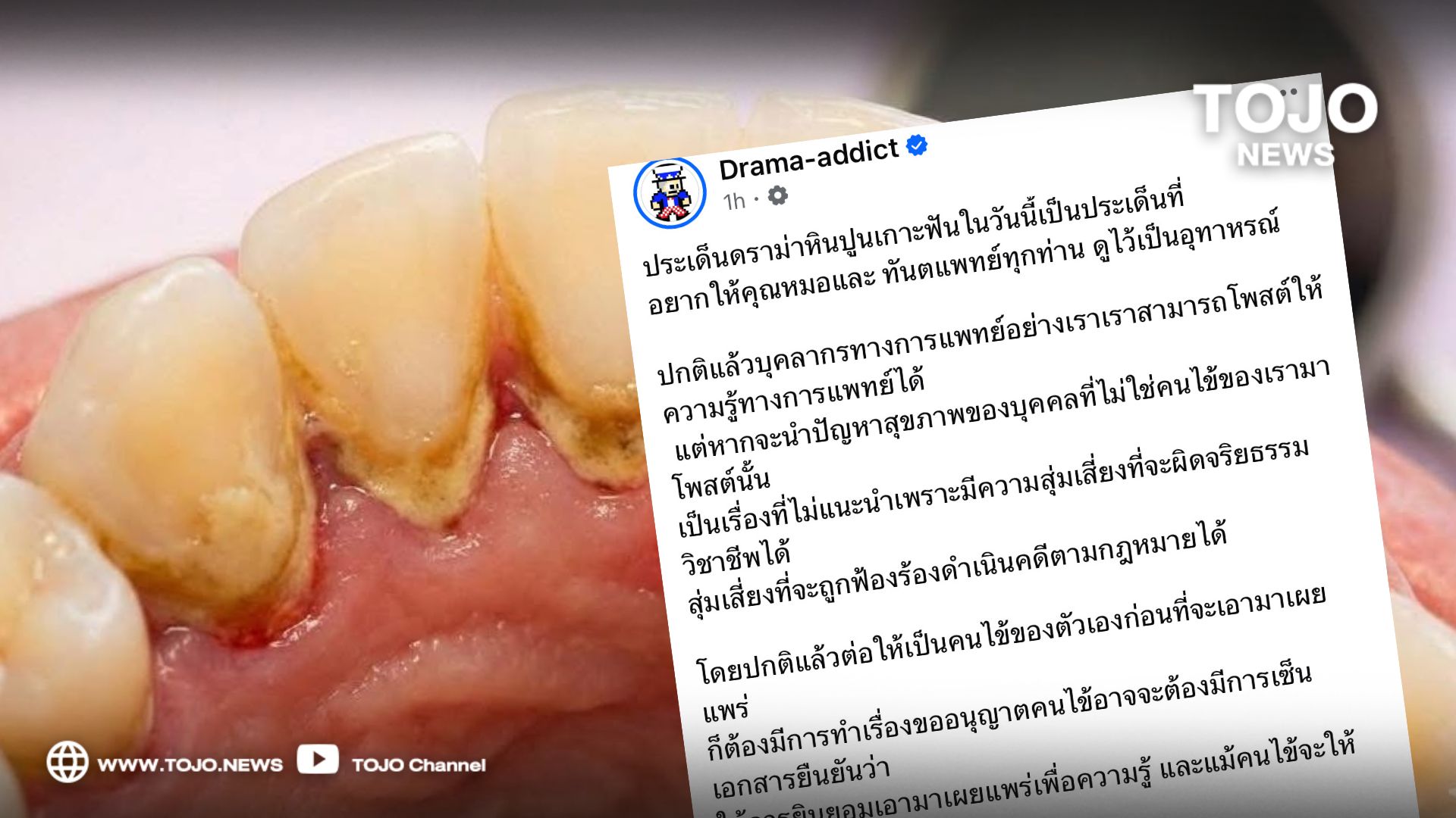 เพจดัง เตือน หมอเผยแพร่เคสหินปูนเกาะฟัน อาจสุ่มเสี่ยงที่จะผิดจริยธรรมวิชาชีพ
