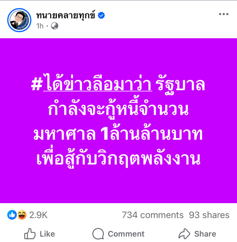 ได้ข่าวลือมาว่า รัฐบาลกำลังจะกู้หนี้จำนวนมหาศาล 1ล้านล้านบาท เพื่อสู้กับวิกฤตพลังงาน