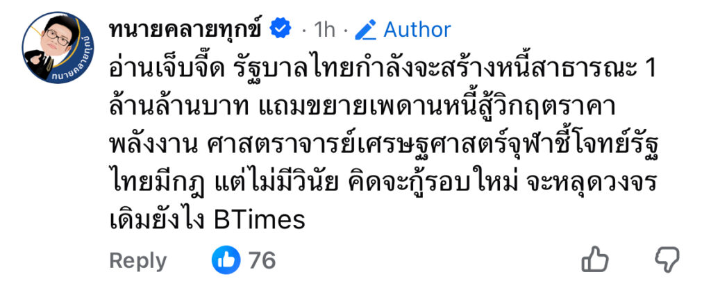อ่านเจ็บจี๊ด รัฐบาลไทยกำลังจะสร้างหนี้สาธารณะ 1 ล้านล้านบาท แถมขยายเพดานหนี้สู้วิกฤตราคาพลังงาน ศาสตราจารย์เศรษฐศาสตร์จุฬาชี้โจทย์รัฐไทยมีกฎ แต่ไม่มีวินัย คิดจะกู้รอบใหม่ จะหลุดวงจรเดิมยังไง