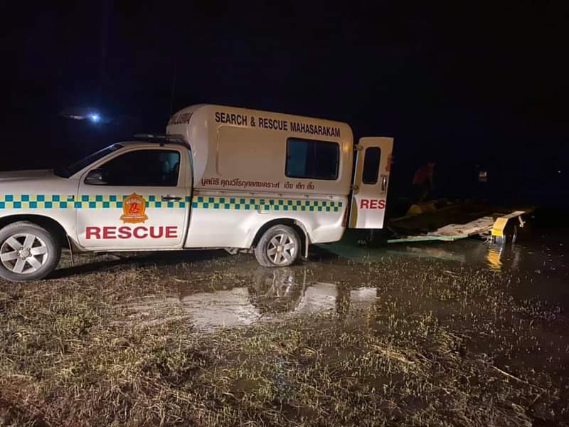 จนท.มูลนิธิคุณวีโรกุศลสงเคราะห์ -เอ็งเต็กตึ๊ง- จุดสหัสขันธ์ กาฬสินธุ์ ผิดสังเกต พบรถจอดทิ้งไว้บนสะพาน พร้อมกับรองเท้า ช่วยกันดำน้ำหา สุดท้ายเจอร่างผู้เสียชีวิต