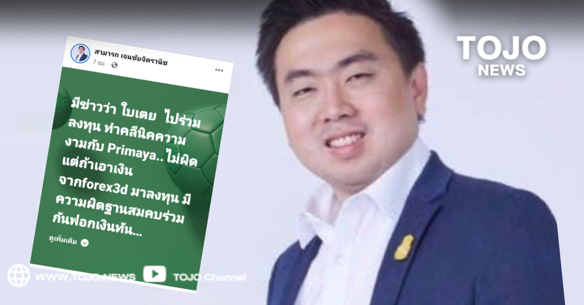 ผู้สื่อข่าวโตโจ้นิวส์รายงานว่า นายสามารถ เจนชัยจิตรวนิช อดีตผู้ช่วยรัฐมนตรีว่าการกระทรวงยุติธรรม ได้โพสต์เฟซบุ๊กส่วนตัว ระบุว่า