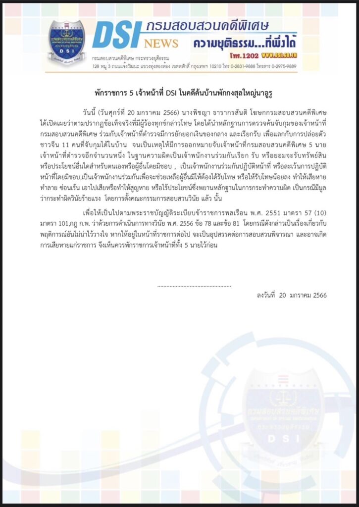 สั่งพักราชการ 5 จนท. ดีเอสไอ เรียกรับเงินค้นบ้านพักกงสุลใหญ่นาอูรู