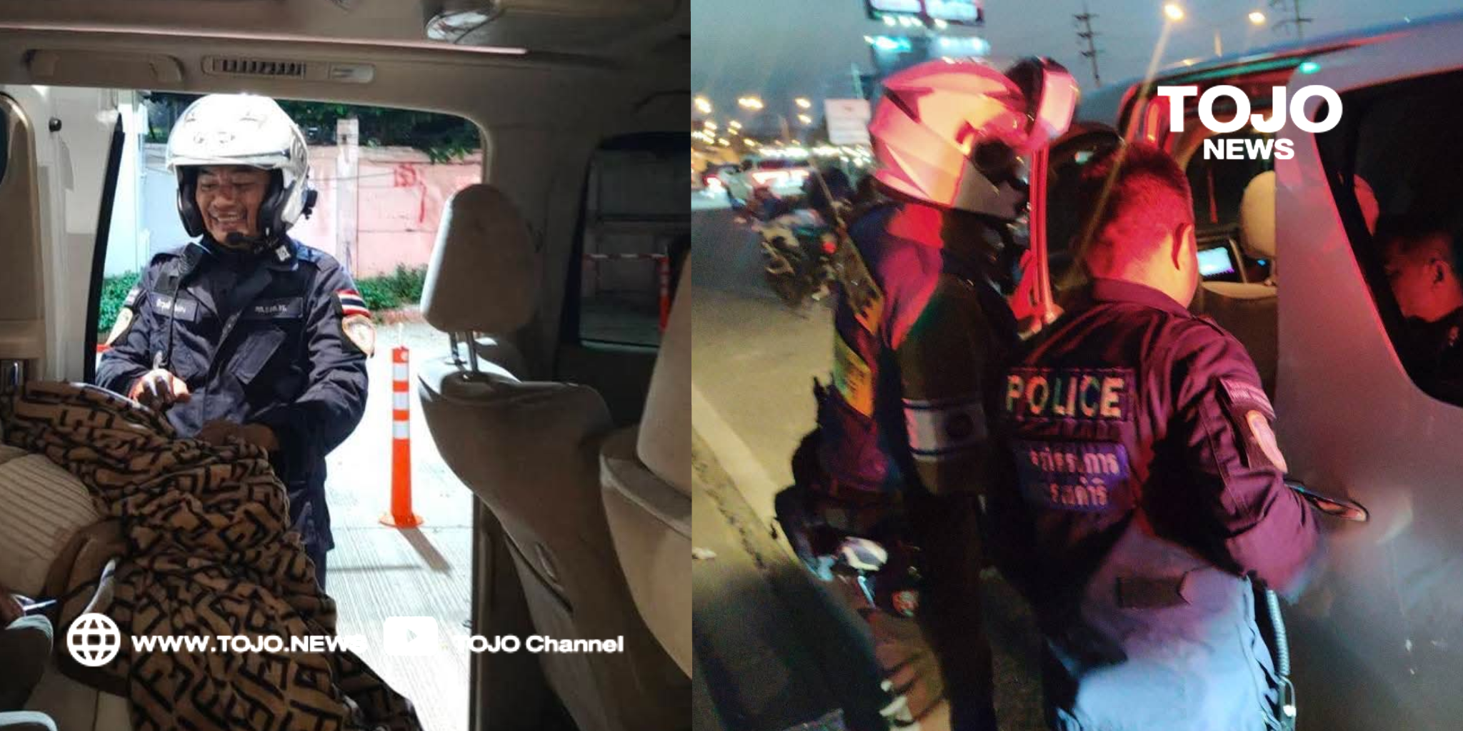 ตำรวจจราจรโครงการพระราชดำริช่วยทำคลอดฉุกเฉินในรถบนมอเตอร์เวย์ ก่อนนำส่งโรงพยาบาลตำรวจ