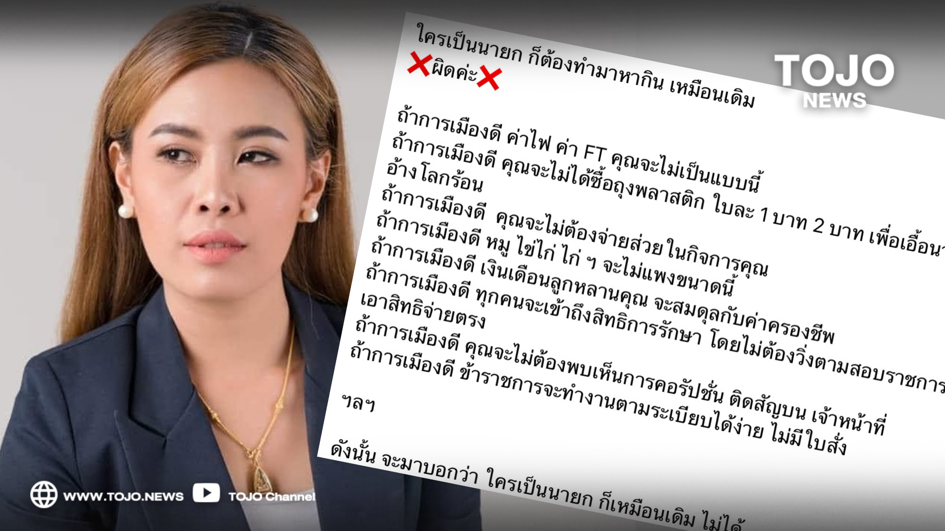 ถ้าการเมืองดี คุณจะไม่ได้ซื้อถุงพลาสติก ใบละ 1 บาท 2 บาท เพื่อเอื้อนายทุน แต่อ้างโลกร้อน