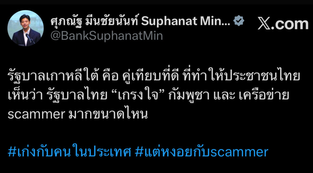 รัฐบาลเกาหลีใต้ คือ คู่เทียบที่ดี ที่ทำให้ประชาชนไทยเห็นว่า รัฐบาลไทย “เกรงใจ” กัมพูชา และ เครือข่าย scammer มากขนาดไหน