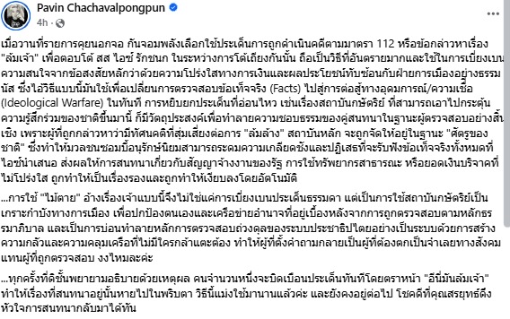 ปวิน ชี้ กรณีกัน จอมพลัง ใช้ประเด็นสถาบันฯ ตอบโต้ ไอซ์ รักชนก ถือว่าอันตรายและนำมาเบี่ยงเบนประเด็นข้อสงสัย