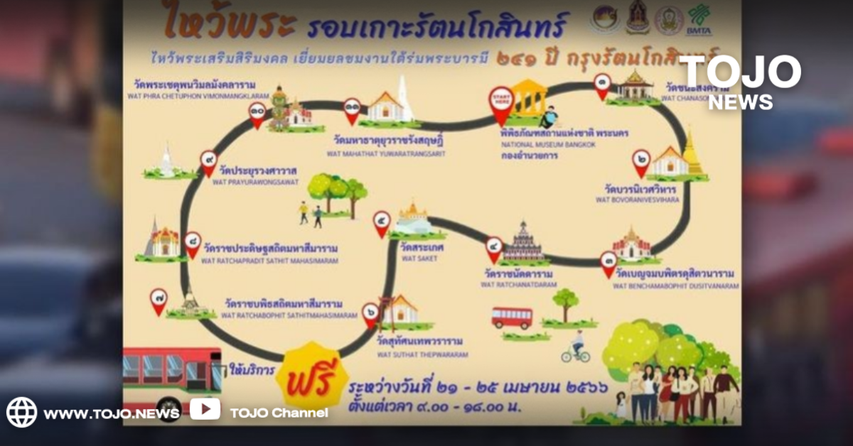 ผู้สื่อข่าวโตโจ้นิวส์รายงานว่า นายกิตติกานต์ จอมดวง จารุวรพลกุล ผู้อำนวยการองค์การขนส่งมวลชนกรุงเทพ (ขสมก.) เปิดเผยว่า ตามที่รัฐบาล โดยกระทรวงวัฒนธรรม ได้กำหนดจัดกิจกรรม “ไหว้พระเสริมสิริมงคล เยี่ยมยลชมงาน ใต้ร่มพระบารมี 241 ปี กรุงรัตนโกสินทร์” ระหว่างวันที่ 21-25 เม.ย. 66 เพื่อเทิดพระเกียรติและน้อมรำลึกในพระมหากรุณาธิคุณของพระบาทสมเด็จพระพุทธยอดฟ้าจุฬาโลกมหาราช ปฐมกษัตริย์แห่งราชวงศ์จักรี