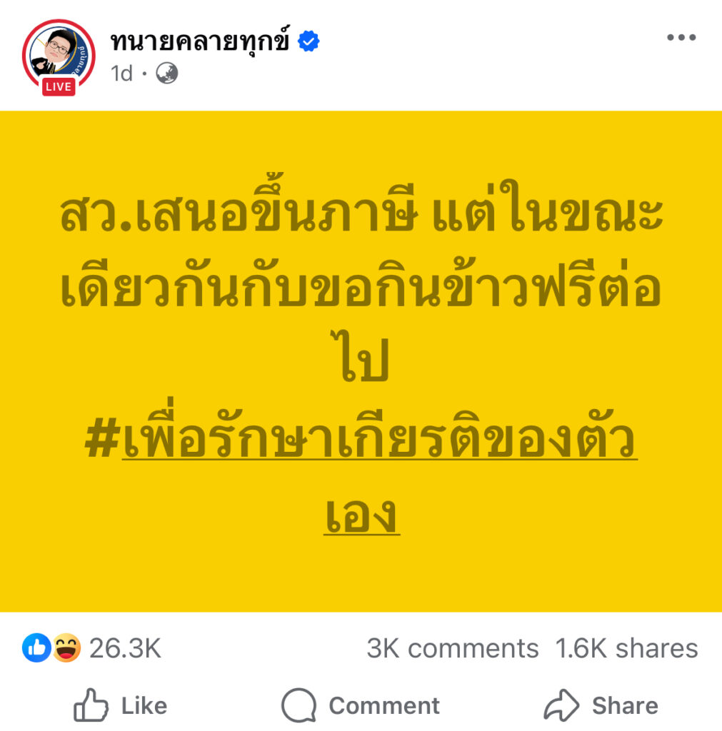 สว.เสนอขึ้นภาษี แต่ในขณะเดียวกันกับขอกินข้าวฟรีต่อไป