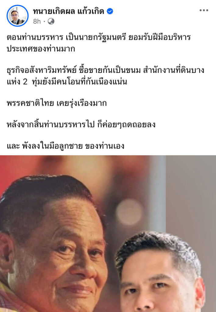 ผู้สื่อข่าวโตโจ้นิวส์รายงานว่า ทนายเกิดผล แก้วเกิด ทนายความชื่อดัง โพสต์ข้อความผ่านเฟซบุ๊ก ระบุว่า