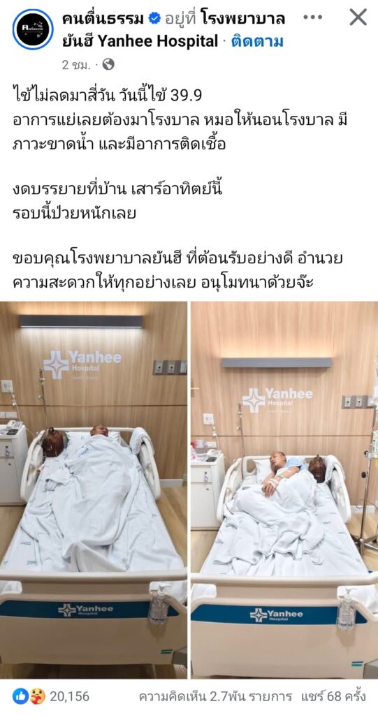 เผยภาพ อ.เบียร์ คนตื่นธรรม นอนรักษาตัวที่ รพ.ไข้ไม่ลดมาสี่วัน วันนี้ไข้ 39.9