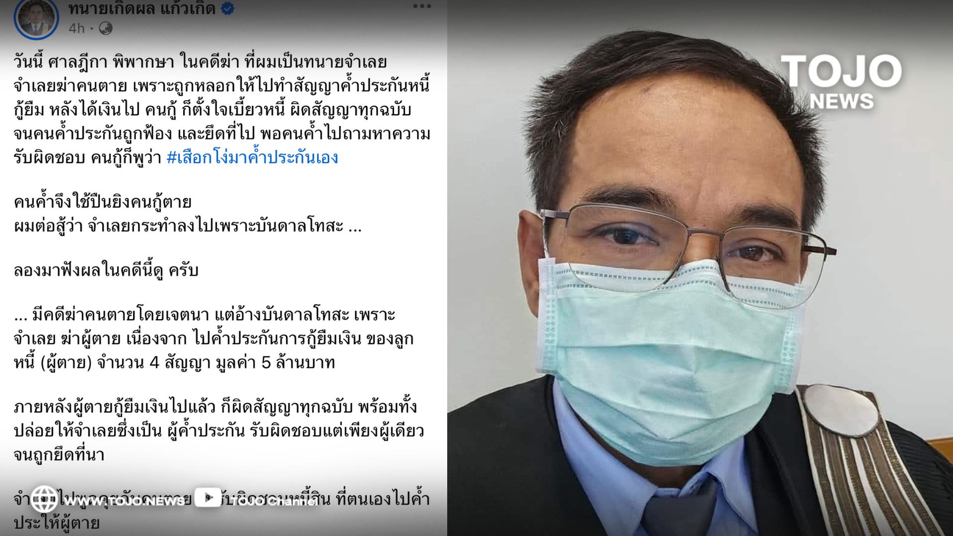 ผู้สื่อข่าวโตโจ้นิวส์รายงานว่า ทนายเกิดผล แก้วเกิด ทนายความชื่อดัง โพสต์ข้อความผ่านเฟซบุ๊ก ระบุว่า