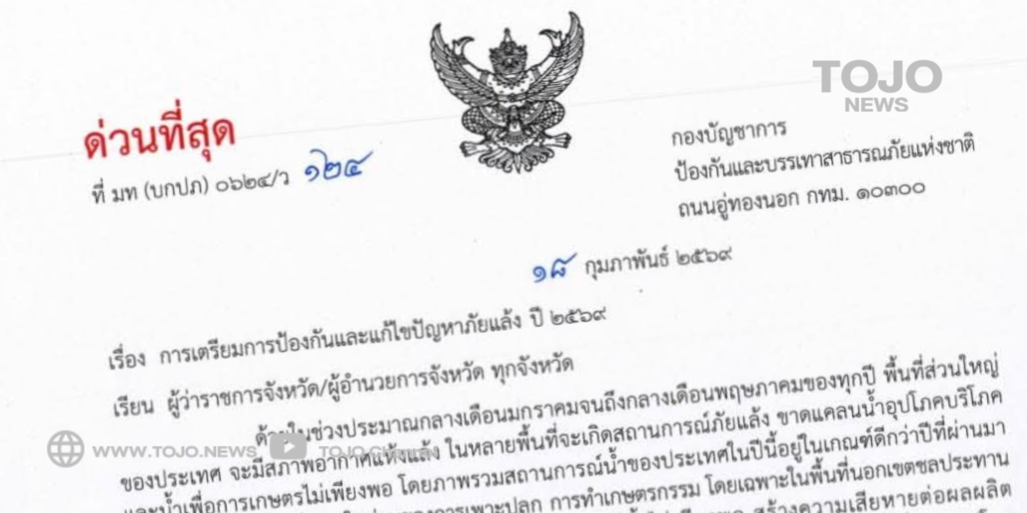 ผู้สื่อข่าวโตโจ้นิวส์รายงานว่า เมื่อวันที่ (22 ก.พ. 69) นายอรรษิษฐ์ สัมพันธรัตน์ ปลัดกระทรวงมหาดไทย เปิดเผยว่า ประเทศไทยได้เข้าสู่ฤดูร้อน ปี 2569 อย่างเป็นทางการตั้งแต่วันนี้เป็นต้นไป ถึงช่วงกลางเดือนพฤษภาคม 2569 ตามประกาศกรมอุตุนิยมวิทยา เรื่อง การเข้าสู่ฤดูร้อนของประเทศไทย พ.ศ. 2569 ลงวันที่ 19 กุมภาพันธ์ 2569 ส่งผลให้อุณหภูมิของประเทศไทยสูงขึ้น โดยคาดว่าจะส่งผลกระทบต่อการดำรงชีวิตประจำวันของประชาชน โดยเฉพาะอย่างยิ่งจากสภาวะอากาศแห้งแล้งที่มีแนวโน้มส่งผลกระทบต่อปริมาณน้ำในหลายพื้นที่