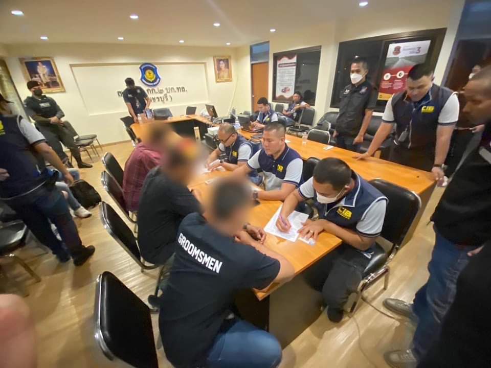 จากการตรวจสอบเบื้องต้นไม่พบเด็กอายุต่ำกว่า 20 ปี เข้าใช้บริการ ไม่พบยาเสพติด เจ้าหน้าที่ตำรวจจึงได้ขอตรวจค้นตัวผู้เข้าใช้บริการ ปรากฏว่า พบ นายณัฐพล อายุ 32 ปี ผู้ใหญ่บ้านแห่งหนึ่งในพื้นที่ จ.เพชรบุรี นายเอกรินทร์ อายุ 35 ปี ผู้ช่วยผู้ใหญ่บ้าน และ นายรุจวิทู อายุ 44 ปี ผู้ติดตาม มีอาวุธปืนพกสั้นพร้อมกระสุน ในลักษณะพร้อมใช้งานอยู่ที่ตัว รวมถึงยังพบ น.ส.รินทร์ศิวา (สงวนนามสกุล) อายุ 31 ปี ตั้งแผงลอยขายบุหรี่ไฟฟ้าอยู่บริเวณหน้าห้องน้ำของผับ จึงควบคุมตัวทั้งหมดพร้อมตรวจยึดอาวุธปืนและบุหรี่ไฟฟ้าไว้เป็นของกลาง