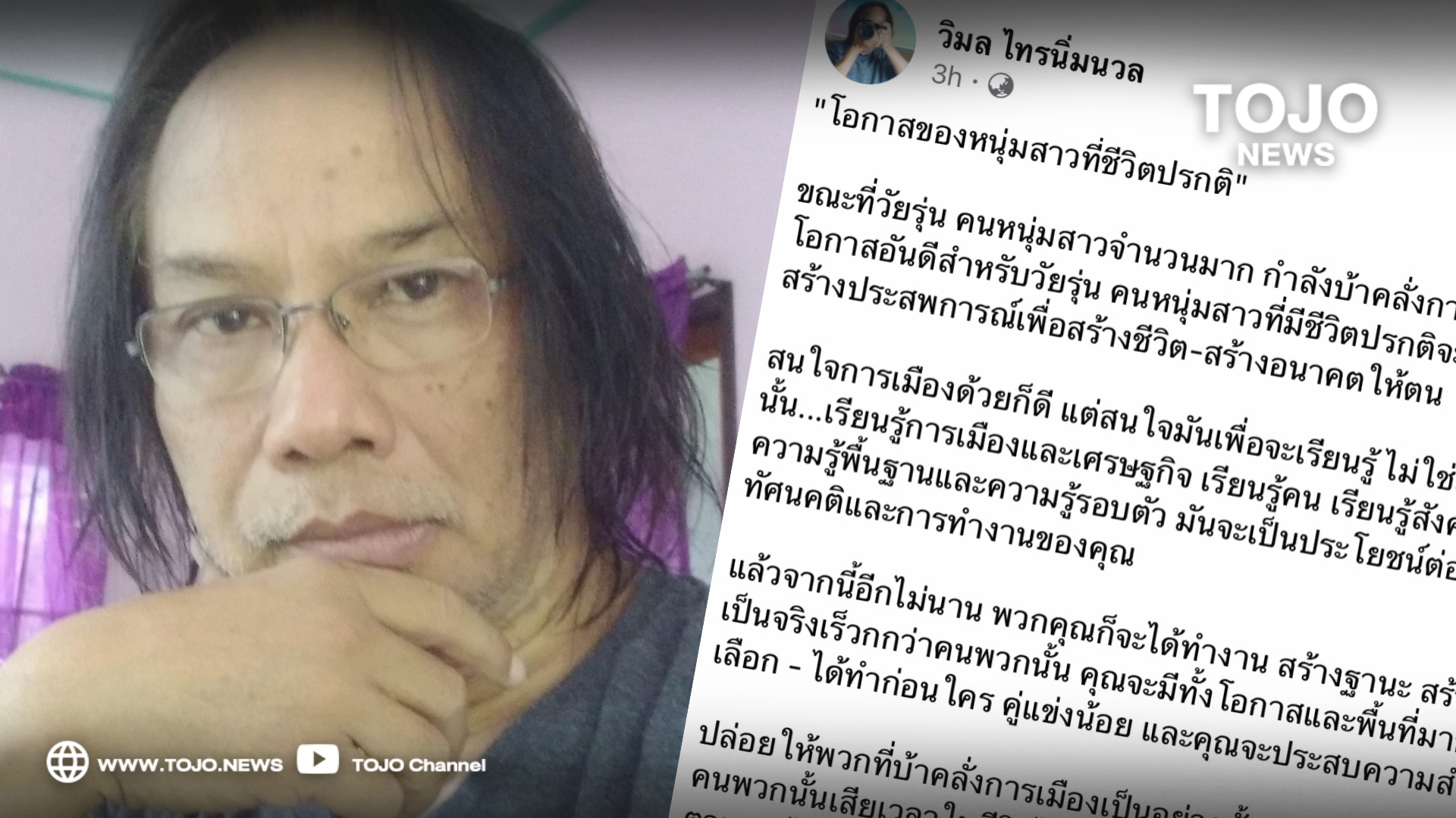ผู้สื่อข่าวโตโจ้นิวส์รายงานว่า วิมล ไทรนิ่มนวล นักเขียนรางวัลซีไรต์ โพสต์ข้อความในเฟซบุ๊ก ระบุว่า
