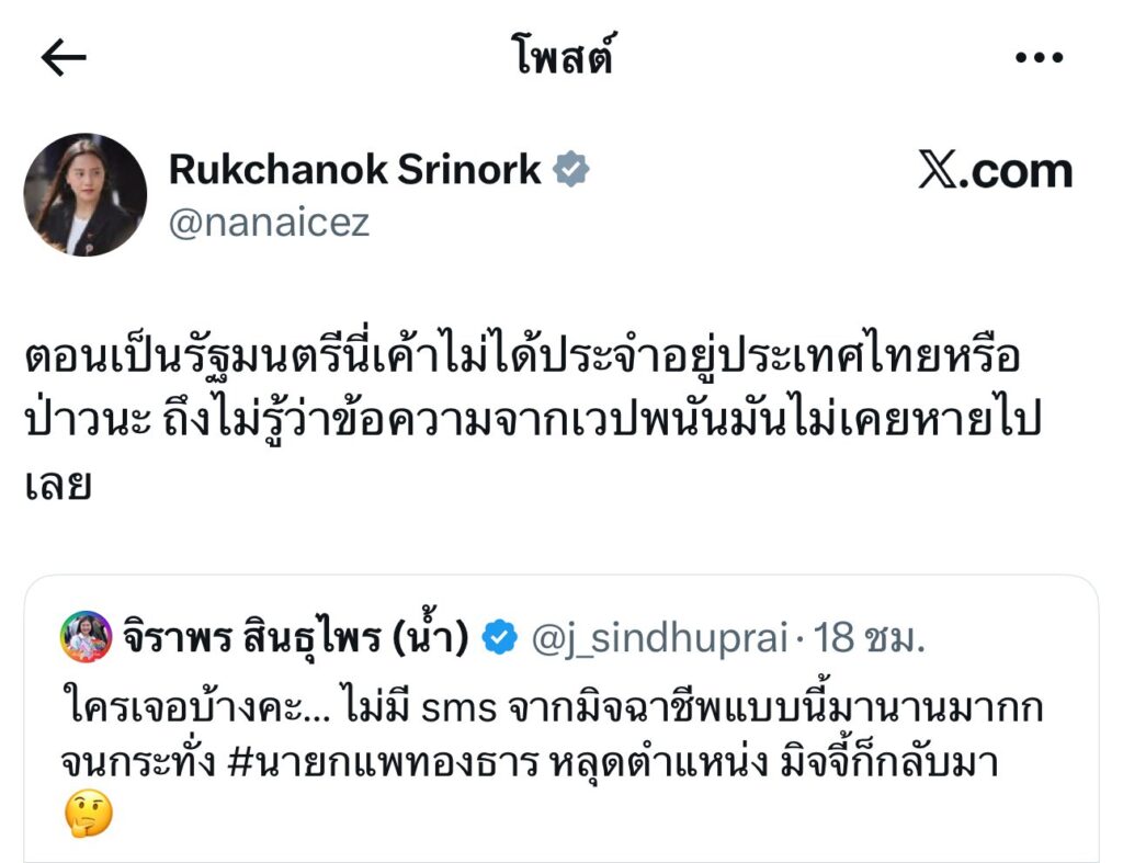 จิราพร แชร์ เจอข้อความมิจฉาชีพ หลังแพทองธารหลุดตำแหน่ง รักชนก สวน ข้อความมิจฉาชีพไม่เคยหายไป