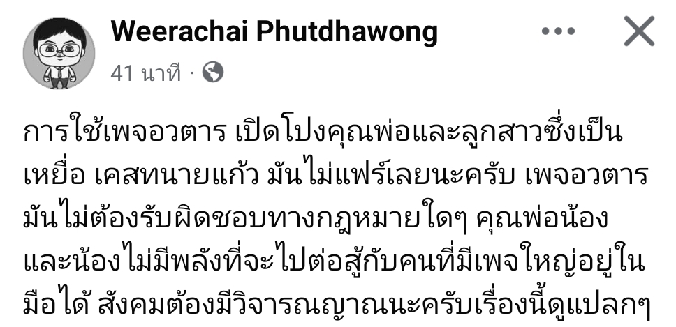 การใช้เพจอวตาร เปิดโปงคุณพ่อและลูกสาวซึ่งเป็นเหยื่อ เคสทนายแก้ว มันไม่แฟร์เลยนะครับ เพจอวตารมันไม่ต้องรับผิดชอบทางกฎหมายใดๆ
