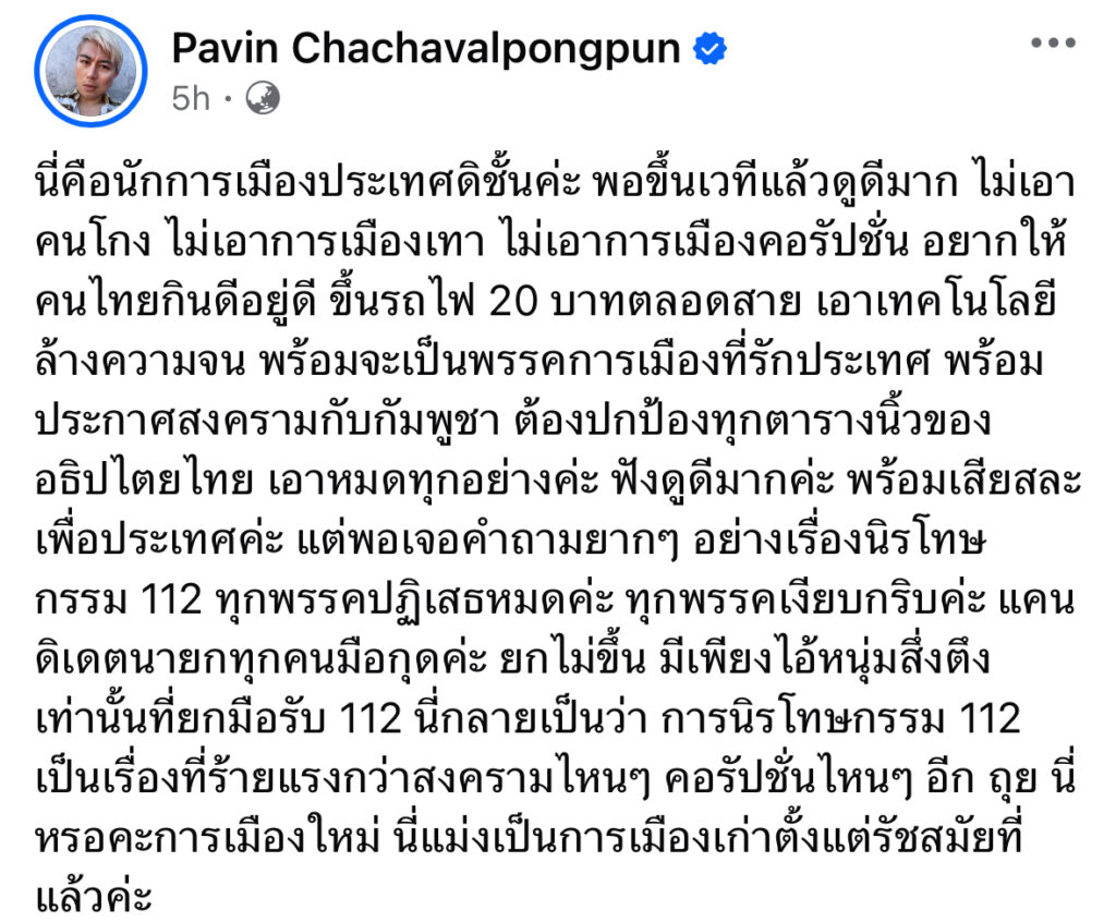 ปวิน ฟาด พรรคการเมือง ปฏิเสธนิรโทษกรรม ม.112 นี่หรือการเมืองแบบใหม่
