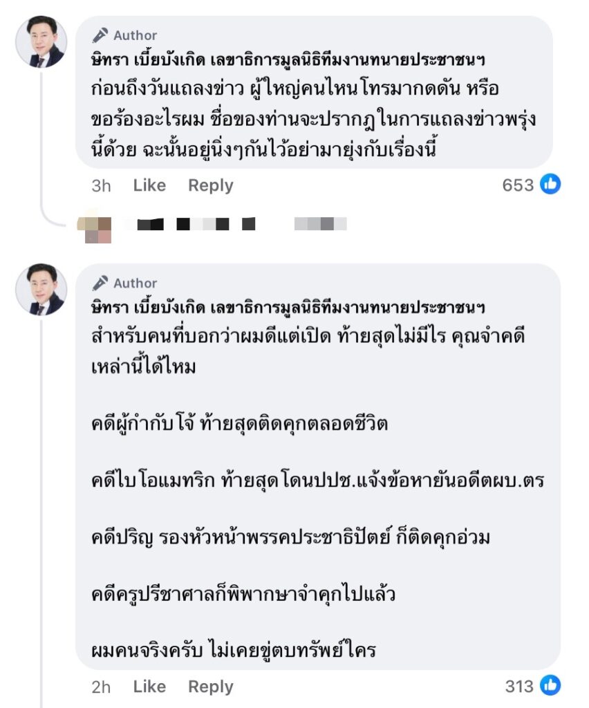 ทนายตั้มยืนยันว่า เป็นคนจริง ที่เปิดเรื่องมาไม่ได้ต้องการขู่ตบทรัพย์ใคร โดยระบุว่า สำหรับคนที่บอกว่าผมดีแต่เปิด ท้ายสุดไม่มีไร คุณจำคดีเหล่านี้ได้ไหม