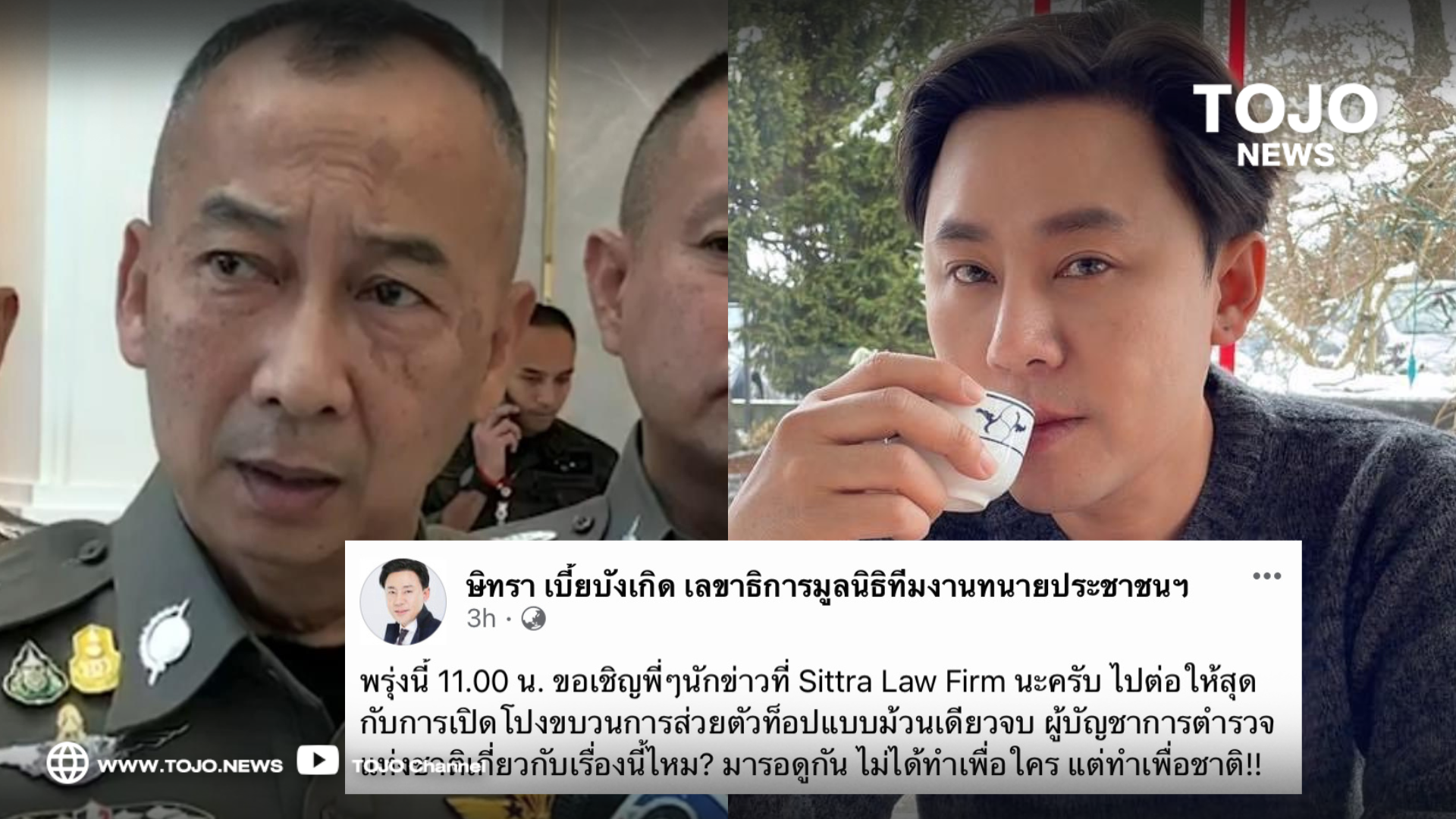 ผู้สื่อข่าวโตโจ้นิวส์รายงานว่า นายษิทรา เบี้ยบังเกิด หรือทนายตั้ม เลขาธิการมูลนิธิทีมงานทนายประชาชนฯ โพสต์ข้อความผ่านเฟซบุ๊ก ระบุว่า พรุ่งนี้ 11.00 น. ขอเชิญพี่ๆนักข่าวที่ Sittra Law Firm นะครับ ไปต่อให้สุด กับการเปิดโปงขบวนการส่วยตัวท็อปแบบม้วนเดียวจบ ผู้บัญชาการตำรวจแห่งชาติเกี่ยวกับเรื่องนี้ไหม? มารอดูกัน ไม่ได้ทำเพื่อใคร แต่ทำเพื่อชาติ!!
