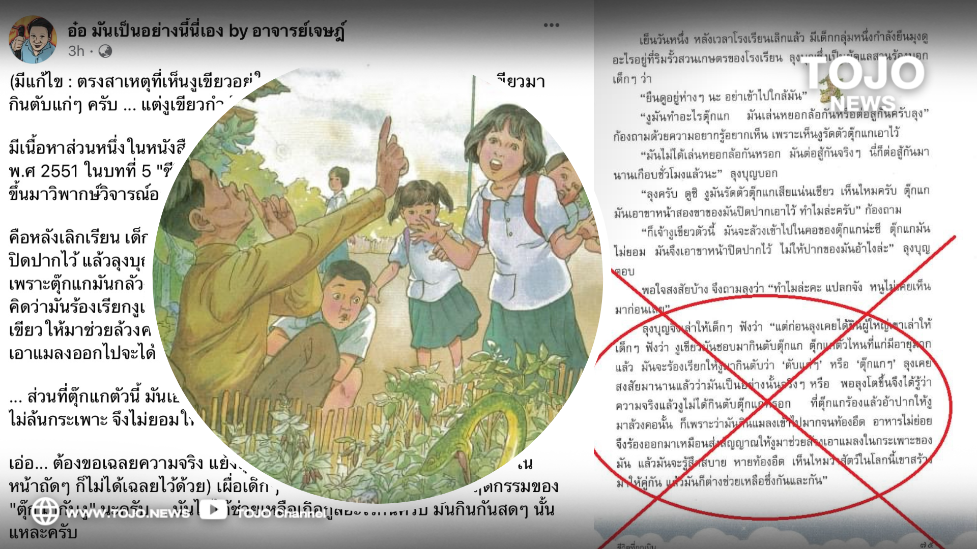 อาจารย์เจษฎ์ ชี้ปมตุ๊กแกกับงูเขียวในหนังสือภาษาพาที ตุ๊กแกไม่ได้เรียกงูมากินตับ เพราะท้องอืด แต่เป็นพฤติกรรมการล่าเหยื่อของงู
