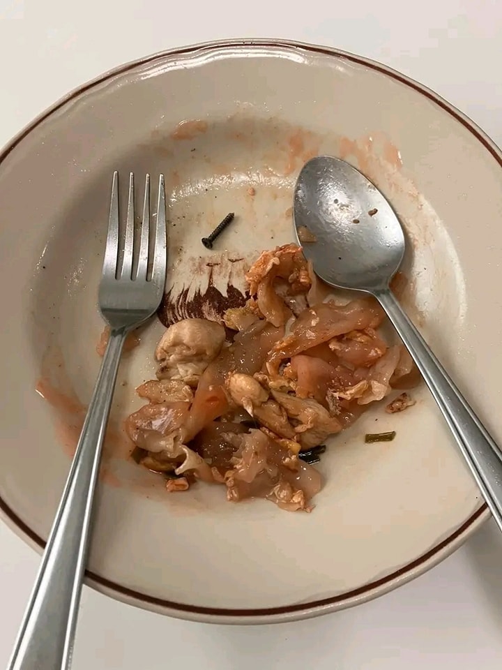 โดยเจ้าตัวโพสต์ระบุว่า “เมื่อวันจันทร์เย็นสั่งอาหารร้านอาหารแห่งหนึ่ง ปตท.พระราม 2 ขาออก มีตะปูสนิมอยู่ในก๋วยเตี๋ยวคั่วไก่ด้วย ไม่โอเคมากๆ เลย ถ้าไม่คายออกมาจากปากจะเกิดอะไรขึ้น