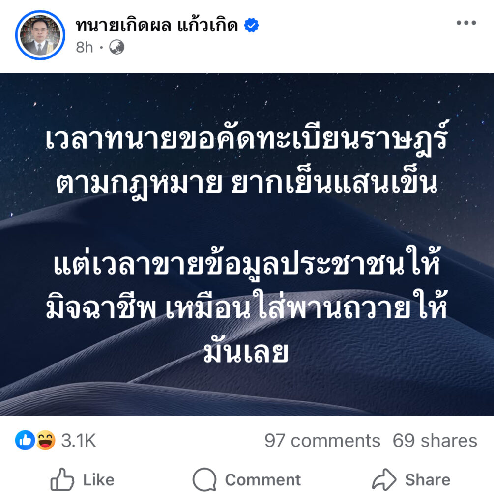 แต่เวลาขายข้อมูลประชาชนให้มิจฉาชีพ เหมือนใส่พานถวายให้มันเลย