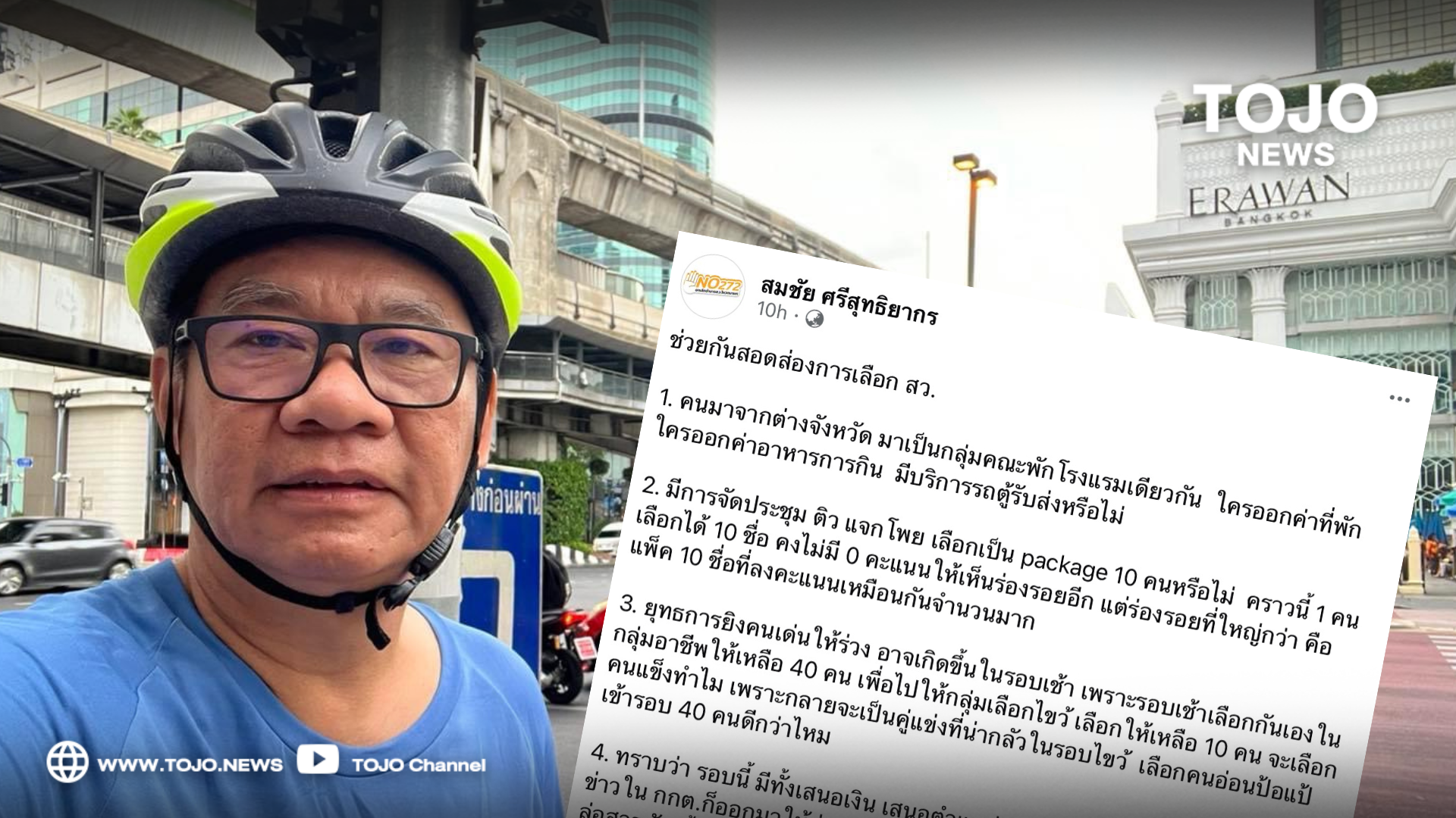 ผู้สื่อข่าวโตโจ้นิวส์รายงานว่า นายสมชัย ศรีสุทธิยากร อดีตกรรมการการเลือกตั้ง ปัจจุบัน ผู้อำนวยการศูนย์วิจัยการเมืองและการพัฒนา มหาวิทยาลัยรังสิต โพสต์ข้อความผ่านเฟซบุ๊ก ระบุว่า