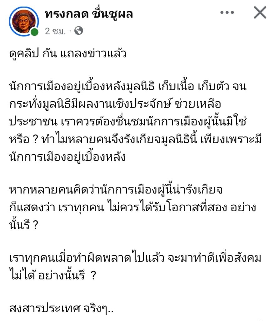 ผู้กองปูเค็ม ชี้ หากหลายคนคิดว่านักการเมืองผู้นี้น่ารังเกียจ ก็แสดงว่า เราทุกคน ไม่ควรได้รับโอกาสที่สอง อย่างนั้นรึ ?