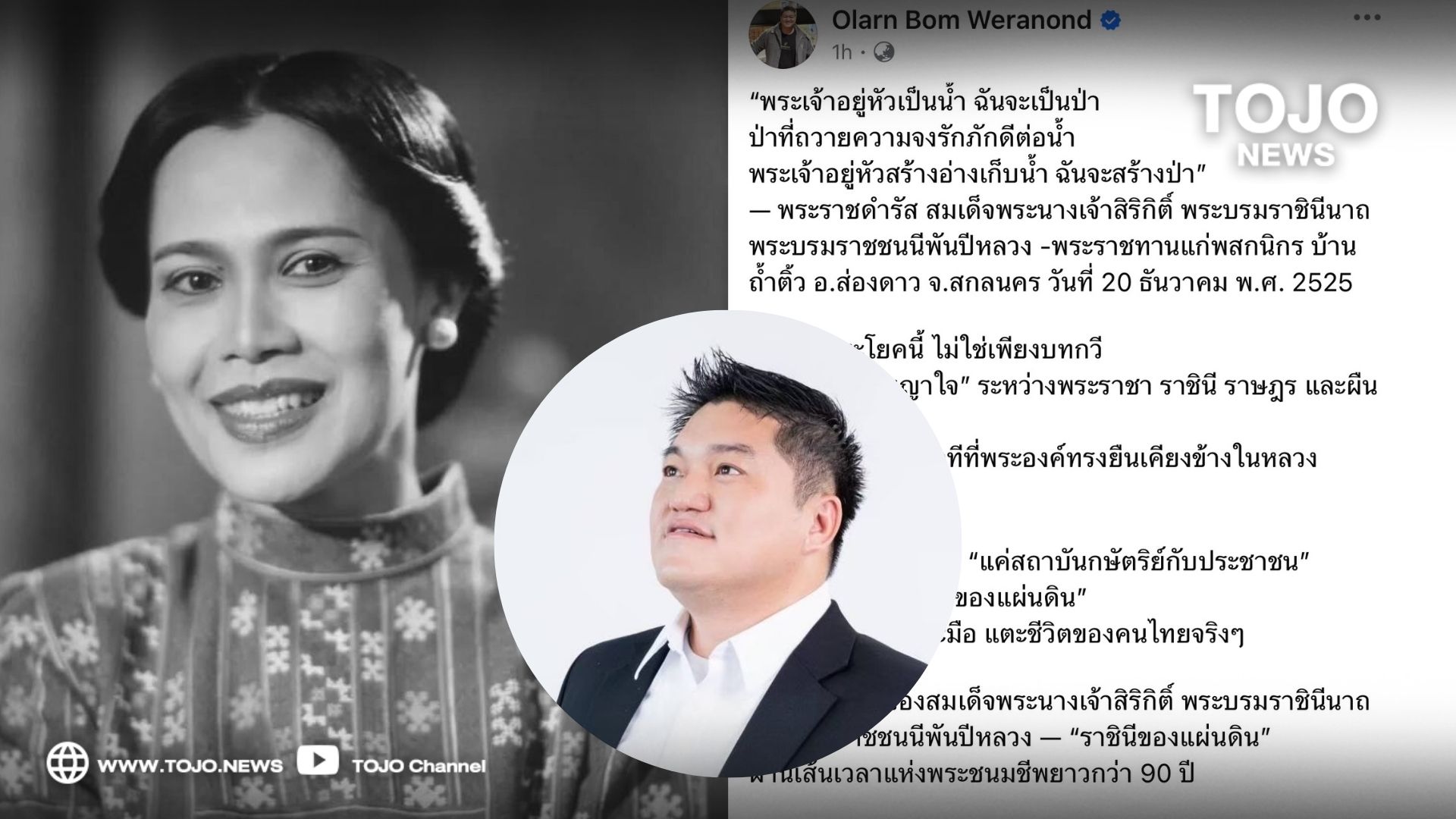 “บอม โอฬาร” เทิดทูน! “ราชินีแห่งแผ่นดิน” ย้อนคำตรัส ”พระเจ้าอยู่หัวเป็นน้ำ ฉันจะเป็นป่า ป่าที่ถวายความจงรักภักดีต่อน้ำ“