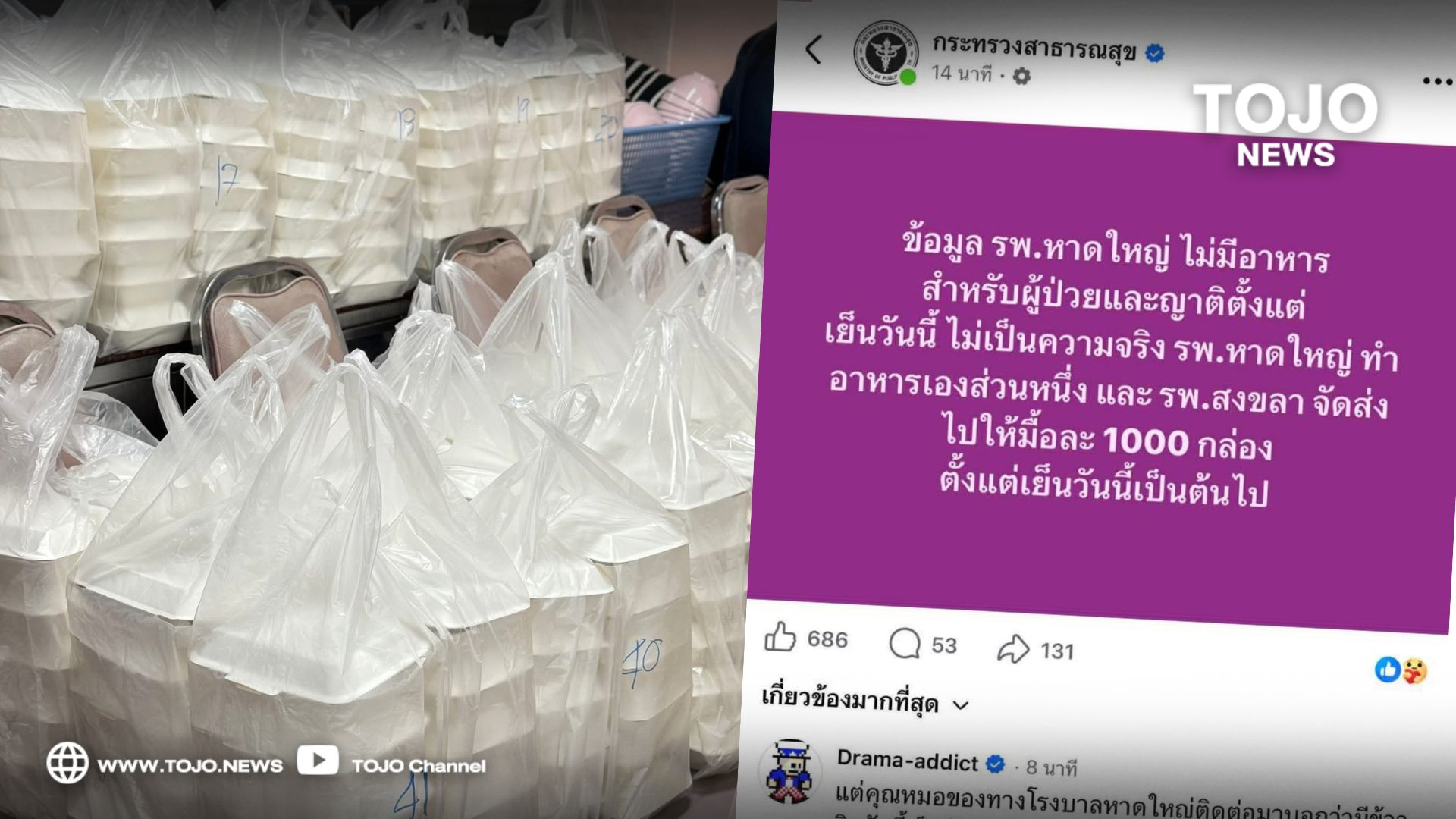 ก.สาธารณสุข แก้ข่าว! ที่บอกรพ.หาดใหญ่ ไม่มีอาหารสำหรับผู้ป่วยและญาติ ไม่เป็นความจริง