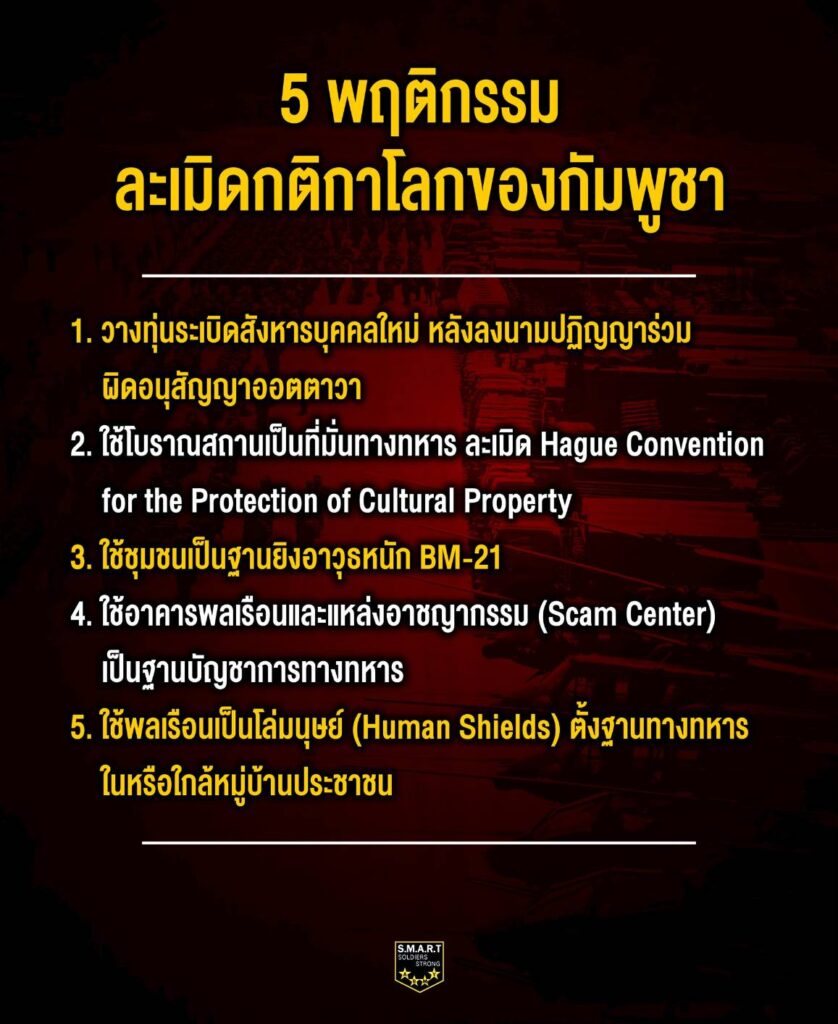 “รมว.กห.” ชี้ชัด 5 พฤติกรรมกัมพูชาละเมิดกติกาโลก วางทุ่นหลังเซ็นสัญญา ใช้พลเรือนเป็นโล่ ยิง BM-21 ใส่ไม่หยุด