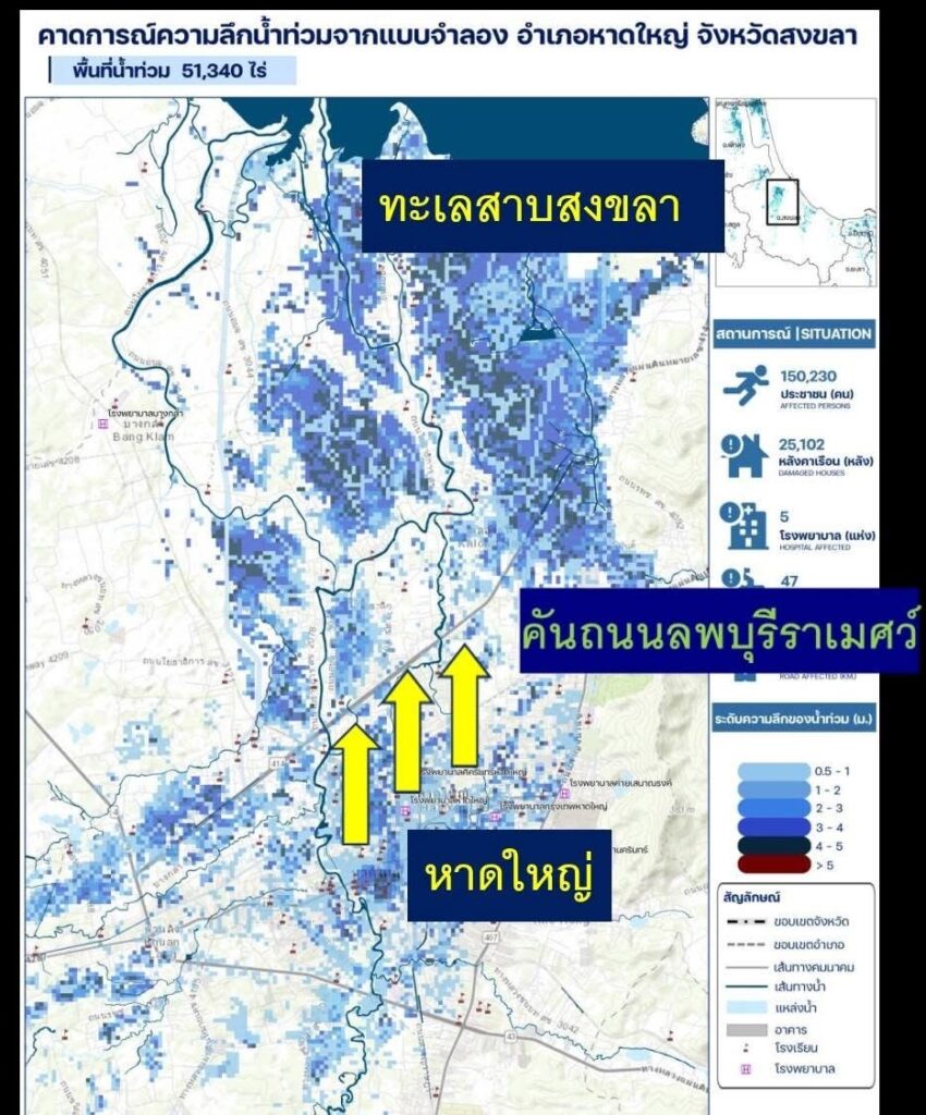 ฝนมากอีกระลอก ระดับหาดใหญ่ยังคงสูง กู้ภัยเสี่ยง ประชาชนอาการหนัก ทำได้ดีที่สุด คือ “การระบายน้ำ” จาก “เมืองหาดใหญ่” ลงสู่ “ทะเลสาบสงขลา” ให้เร็วที่สุด! จะทำให้ระดับน้ำลด ช่วยเหลือชาวบ้านได้สะดวกขึ้น