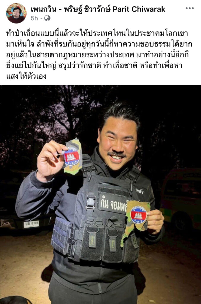 เพนกวิน ติงแรง กัน จอมพลัง โพสต์ภาพถืออาร์มทหารเขมร ลั่น ทำป่าเถื่อนแล้วจะหวังให้ประเทศไทยเขามาเห็นใจ